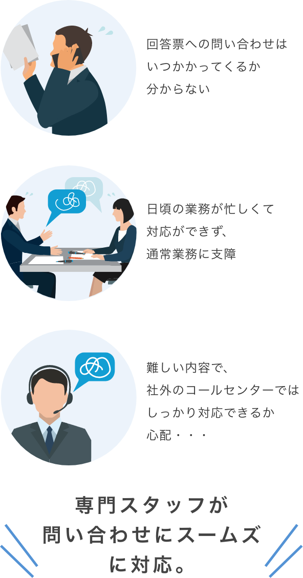 回答票への問い合わせは弊社のコールセンターにて対応。